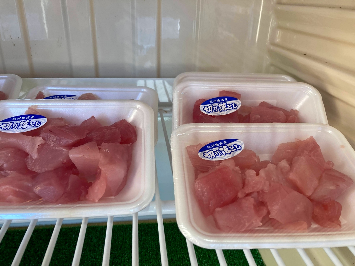 知る人ぞ知る勝浦の隠れた名スポット。1パック500円以下という価格で本マグロの刺し身が買えます。早いと午前中に売り切れることも。