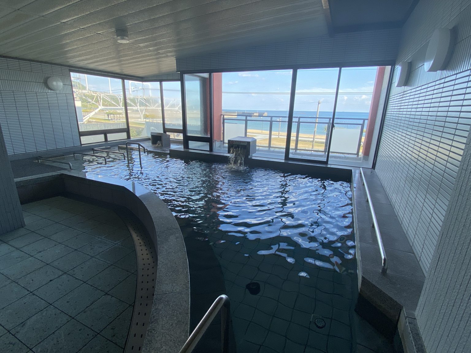 オーシャンビュー(ブルービーチ那智)の温泉で、熊野古道を歩いた後の足を癒すには最高の場所ですよ。ランチタイムを挟んでゆっくり過ごすのがおすすめです。