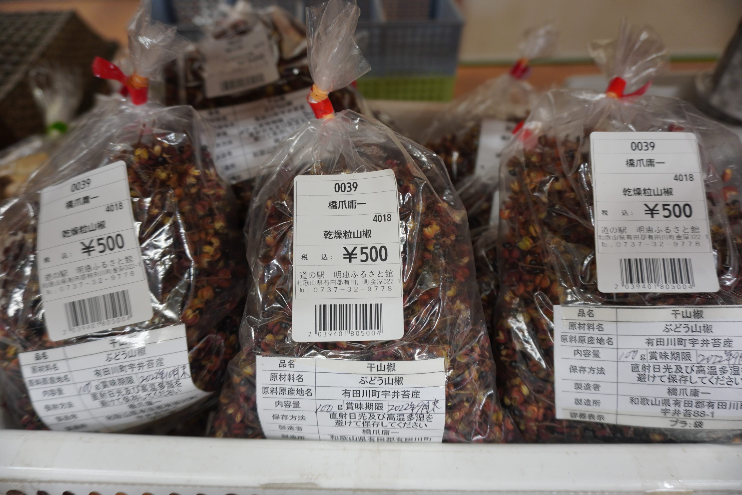 有田川町の道の駅で、地元の調味料やローカル食材が充実。焼き立てパンも人気です。大阪まであと約1時間の場所なので、ここで最後のお土産チェックをするのがおすすめ。日本一の生産量を誇る山椒の生産地にある道の駅です。山椒の実(とてもお手頃)はもちろん、山椒を使ったお土産も品揃えがいいので寄ってみてください。