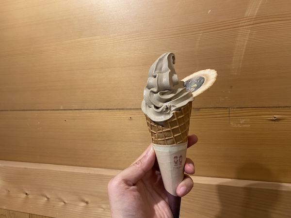 本宮の農家さんが育てた「音無茶」を使ったソフトクリームは湯の峰温泉エリアの隠れた名物。ほんのり苦みのある風味が癖になりますよ。
